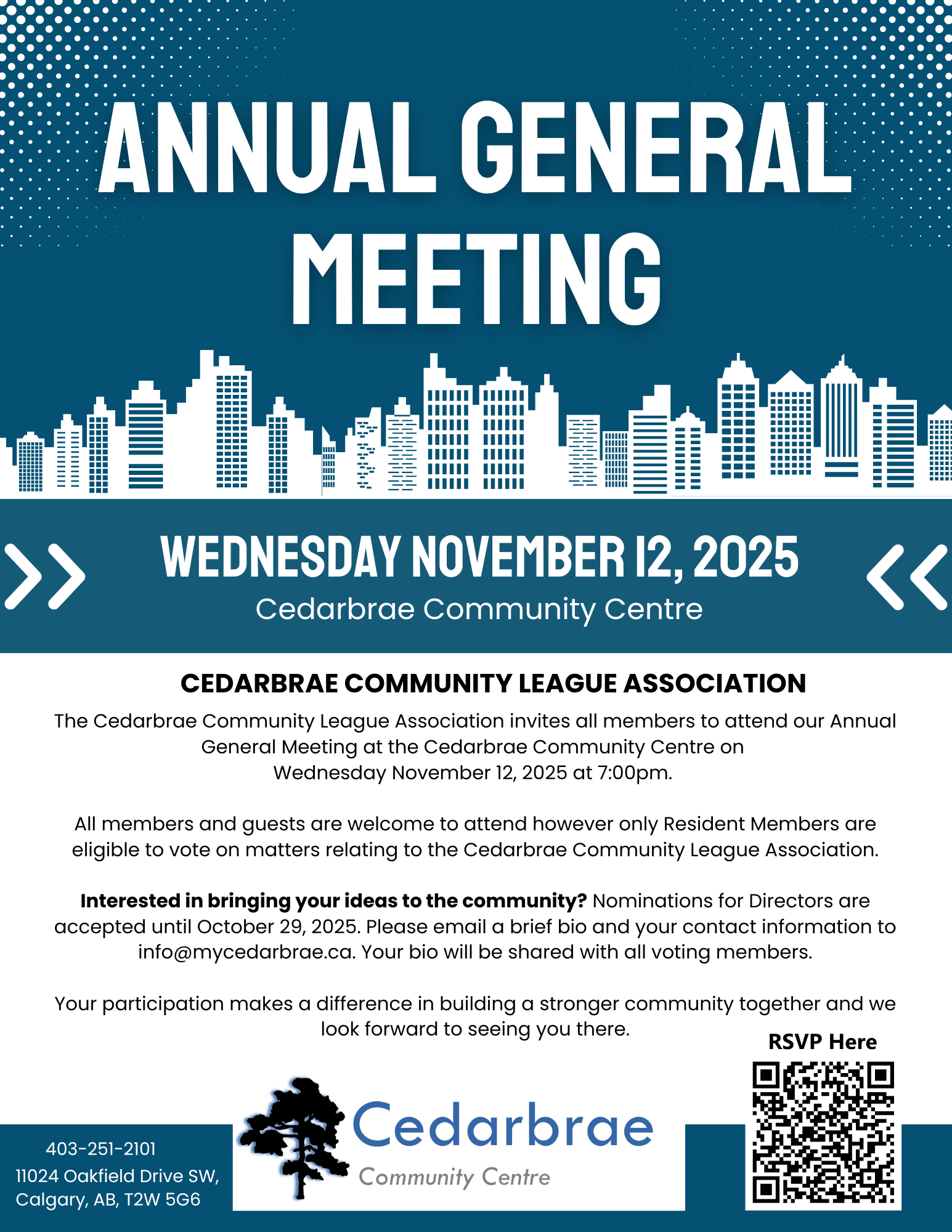 The Cedarbrae Community League Association is a Registered Not For Profit organization dedicated to serving the residents of Cedarbrae and all of Calgary.